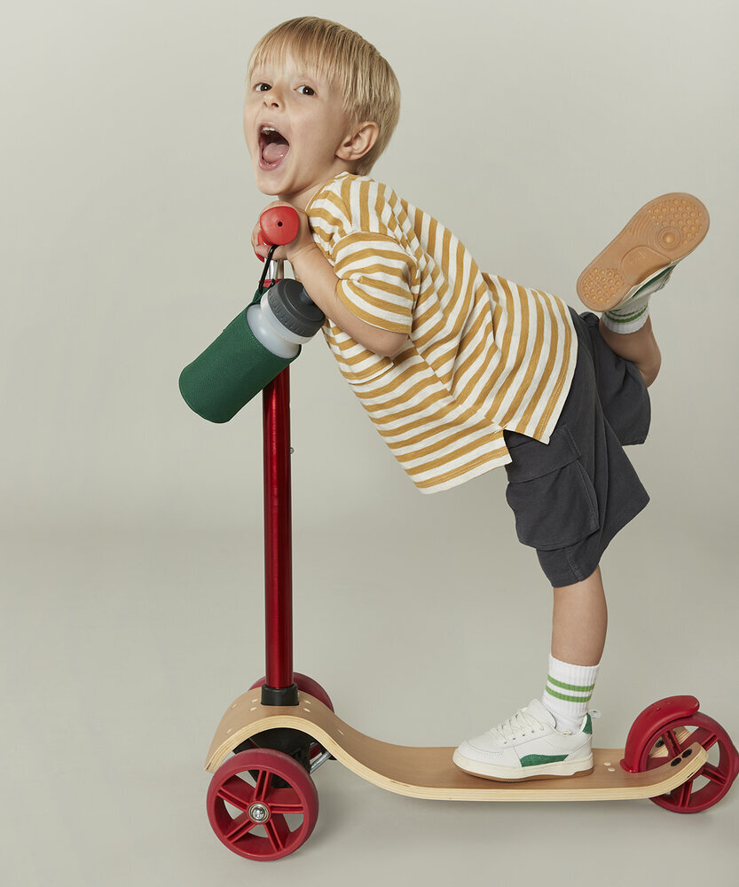 500ml Water bottle included. BPA free soft bottle. Soft pull-up drink nozzle with screw on cap. Ergonomic easy grip neck. Wide necked bottle opening for easy filling and cleaning. Belt loop and carabiner clip. Reach certified.